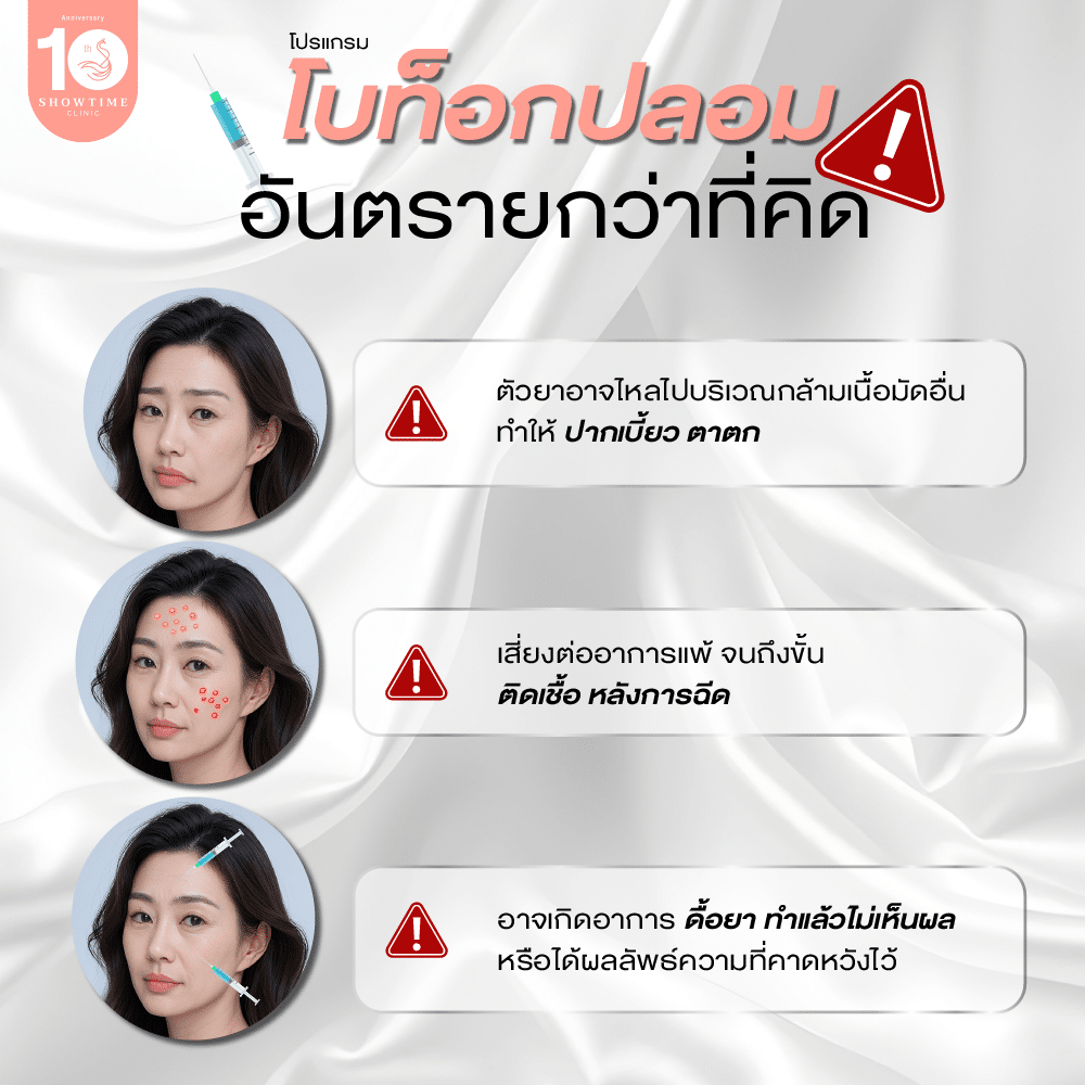 - เลือกใช้โบท็อก (Botox) แท้ ผ่านการรับรองจาก อย. เท่านั้น