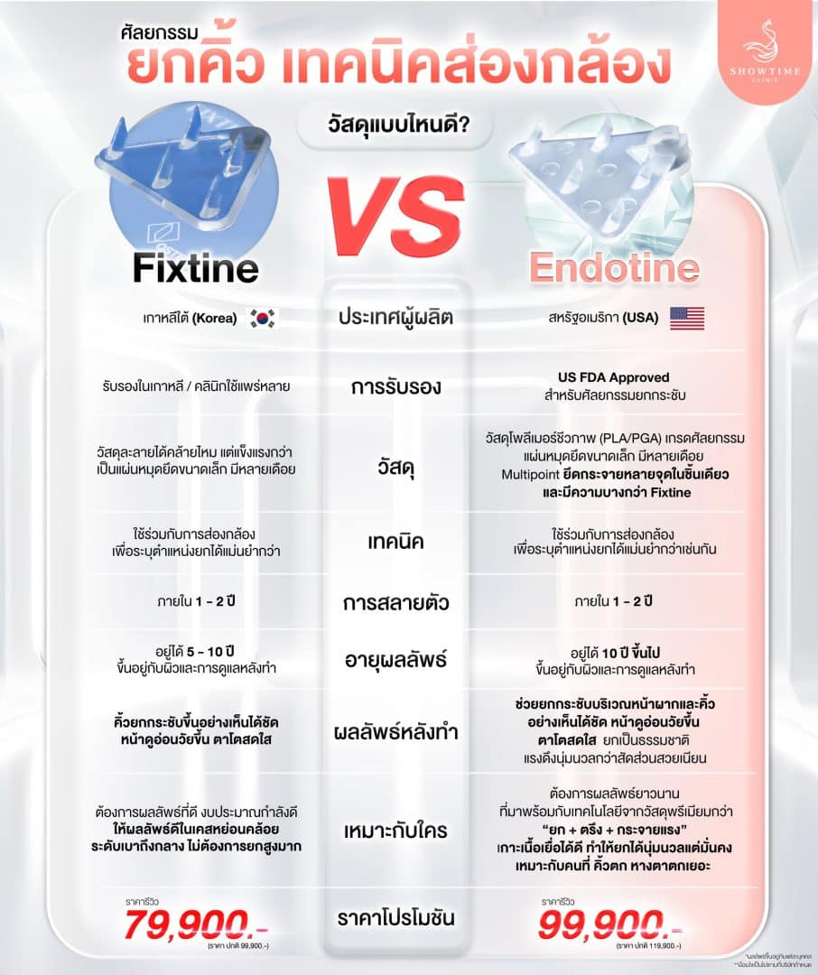 - Endotine ให้ผลยกชัดเจนและอยู่ได้นาน