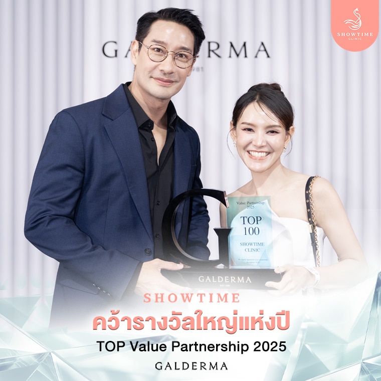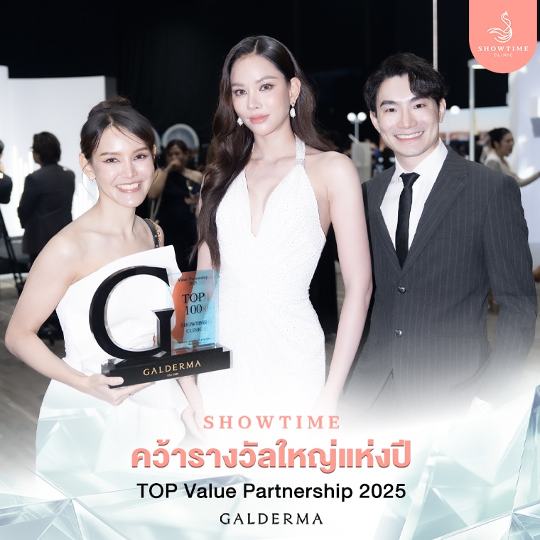 รางวัล Top 100 Value Partnership 2025 เป็นรางวัลที่มอบให้กับคลินิกความงามที่มีความร่วมมือกับ Galderma อย่างโดดเด่นในระดับสากล โดยการพิจารณาไม่ได้มาจากเพียงยอดการรักษาเท่านั้น แต่ยังรวมถึงมาตรฐานการดูแลคนไข้ ความเชี่ยวชาญของทีมแพทย์ การใช้ผลิตภัณฑ์แท้ที่ผ่านการรับรอง รวมถึงความพึงพอใจและความเชื่อมั่นจากผู้เข้ารับบริการ การที่ Showtime Clinic ได้รับรางวัลนี้จึงถือเป็นเครื่องยืนยันถึงมาตรฐานการรักษาที่ได้รับการยอมรับในระดับ Global